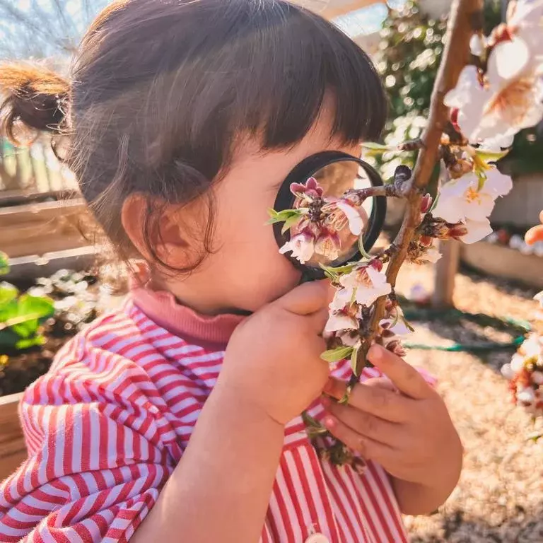 Aprender a jugar, a dar los primeros pasos, las primeras palabras, los primeros cariños... Descubrir el mundo investigando, mancharse con la tierra o mojarse con la lluvia, mirar el cielo, los árboles, las nubes... respirar naturaleza, imaginar y experimentar...
