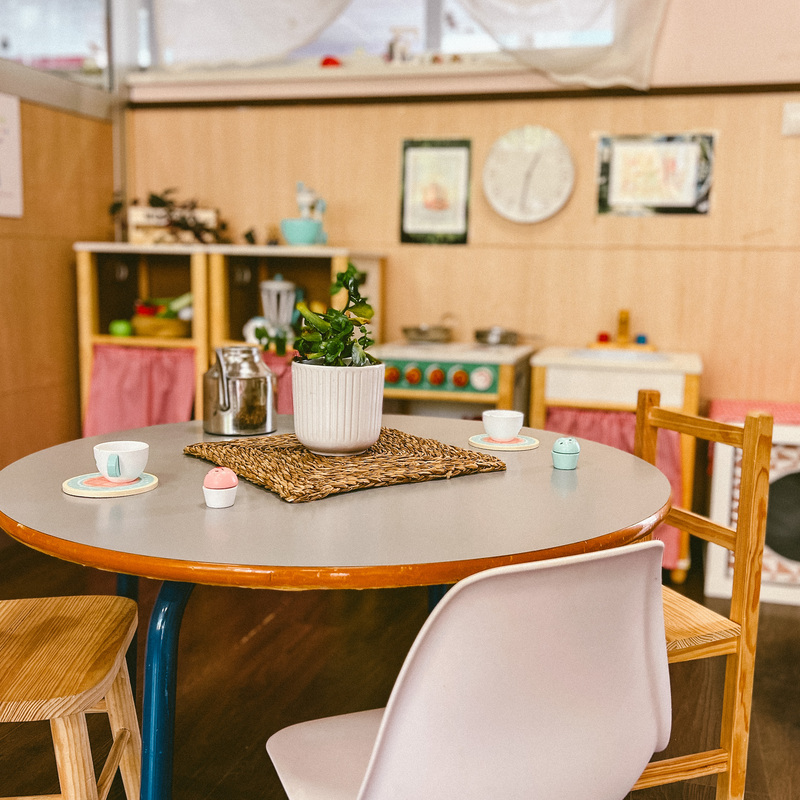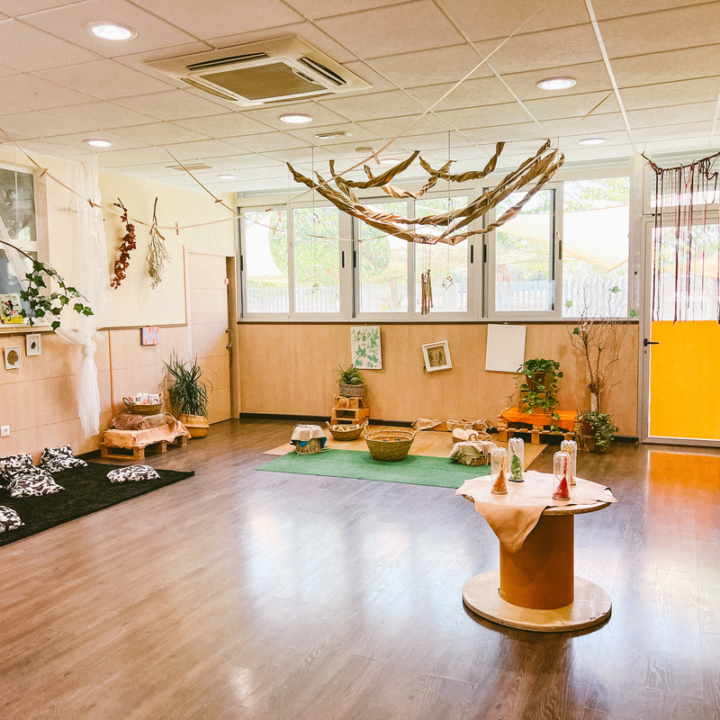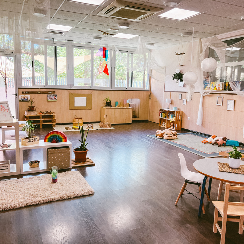 El espacio invita al encuentro y al aprendizaje ofreciendo mensajes sobre lo que se puede hacer, cuándo y cómo lo puede hacer. Espacios cálidos y acogedores donde la colocación del material está pensada para lograr un fin. Cada rincón tiene su identidad y propósito. Los niños necesitan saber dónde se encuentran las cosas para poder definir sus metas. El espacio fomenta la exploración, la relación y socialización con los demás, dando cabida también a la opción de hacer desorden. En el diseño y la organización de los espacios hay un orden y belleza, una estética cuidada que nos ofrece una experiencia sensorial agradable y especial creando un ambiente apropiado para aprovechar al máximo el proceso de aprendizaje.