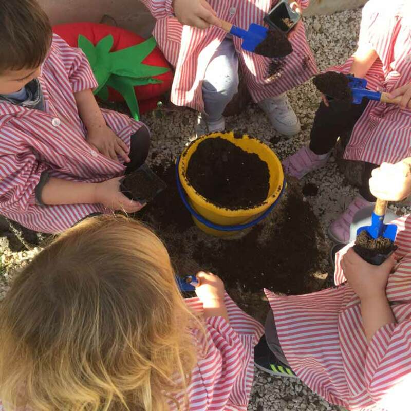 Aprender a jugar, a dar los primeros pasos, las primeras palabras, los primeros cariños... Descubrir el mundo investigando, mancharse con la tierra o mojarse con la lluvia, mirar el cielo, los árboles, las nubes... respirar naturaleza, imaginar y experimentar...